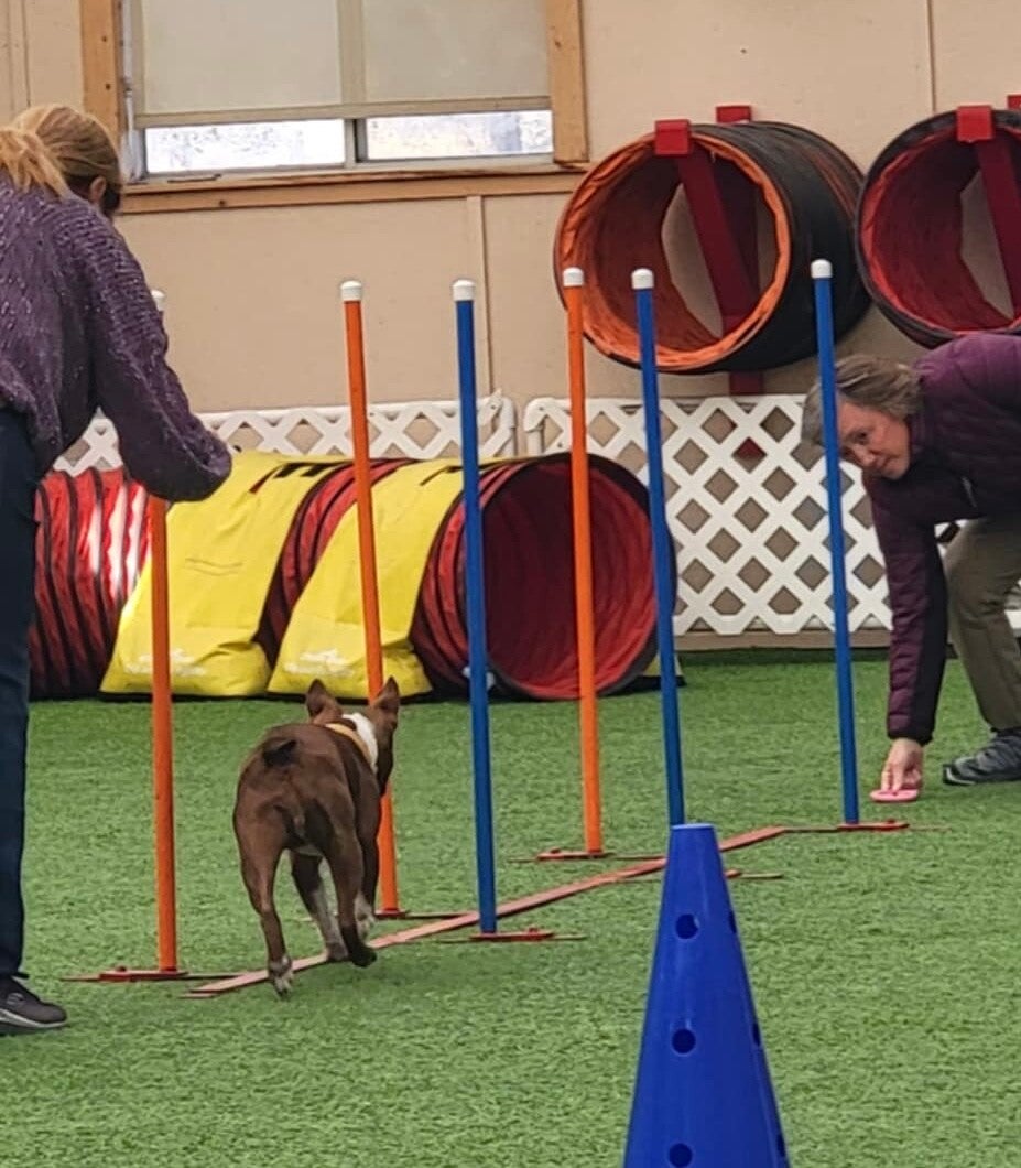 Mocha and I have been taking agility classes for about a year now and she loves it. She's so smart and so strong, she has a blast and can already handle all of the contacts with ease except for the weave poles, we are still working on figuring those out. She would be really great at it if I knew what I was doing! Most of the time when we mess it up it's because I got the cue wrong. But she just plays right along anyway and keeps on going. This has been so much fun and a great bonding experience for us, and she's old enough now that we can start signing her up for novice competitions.